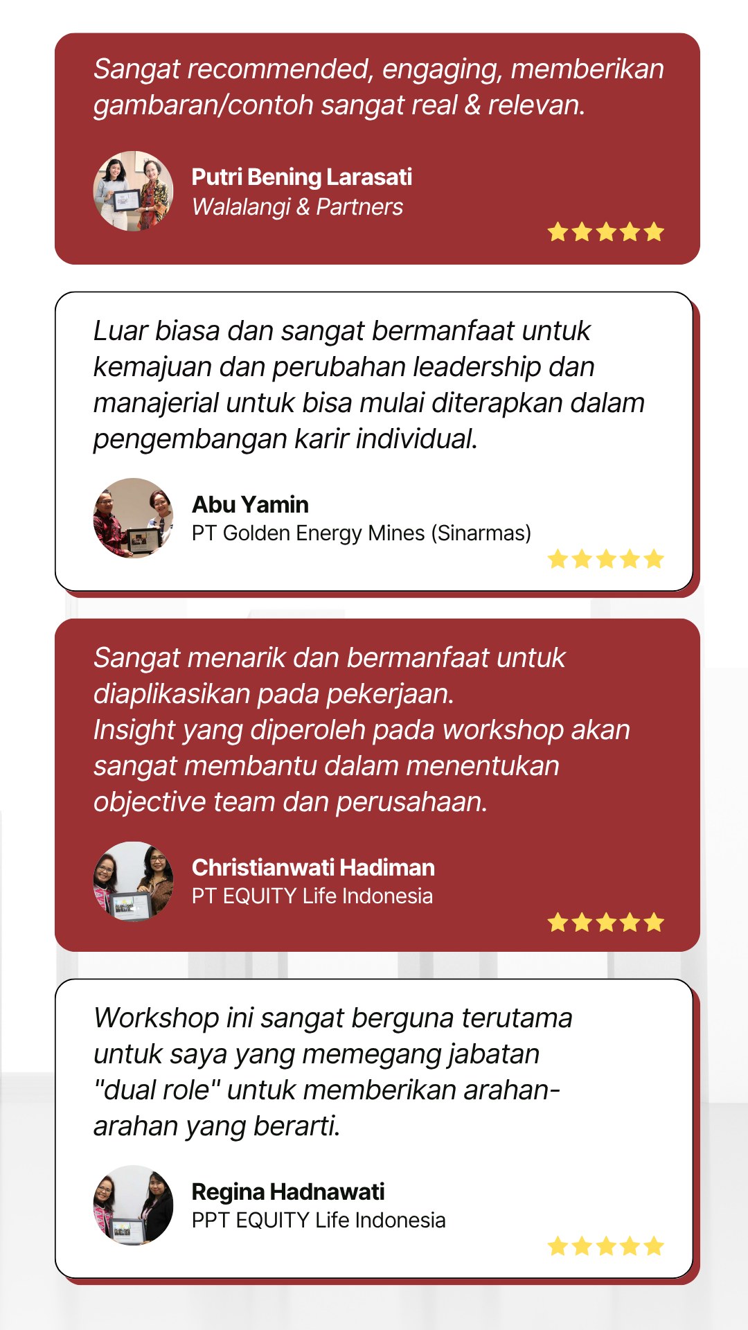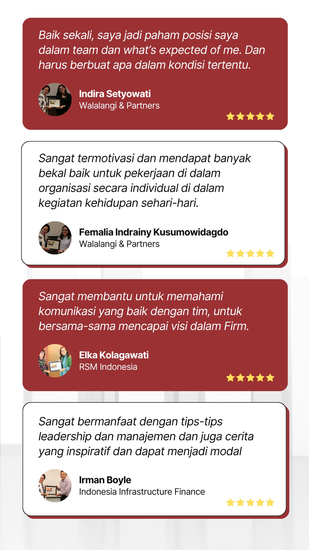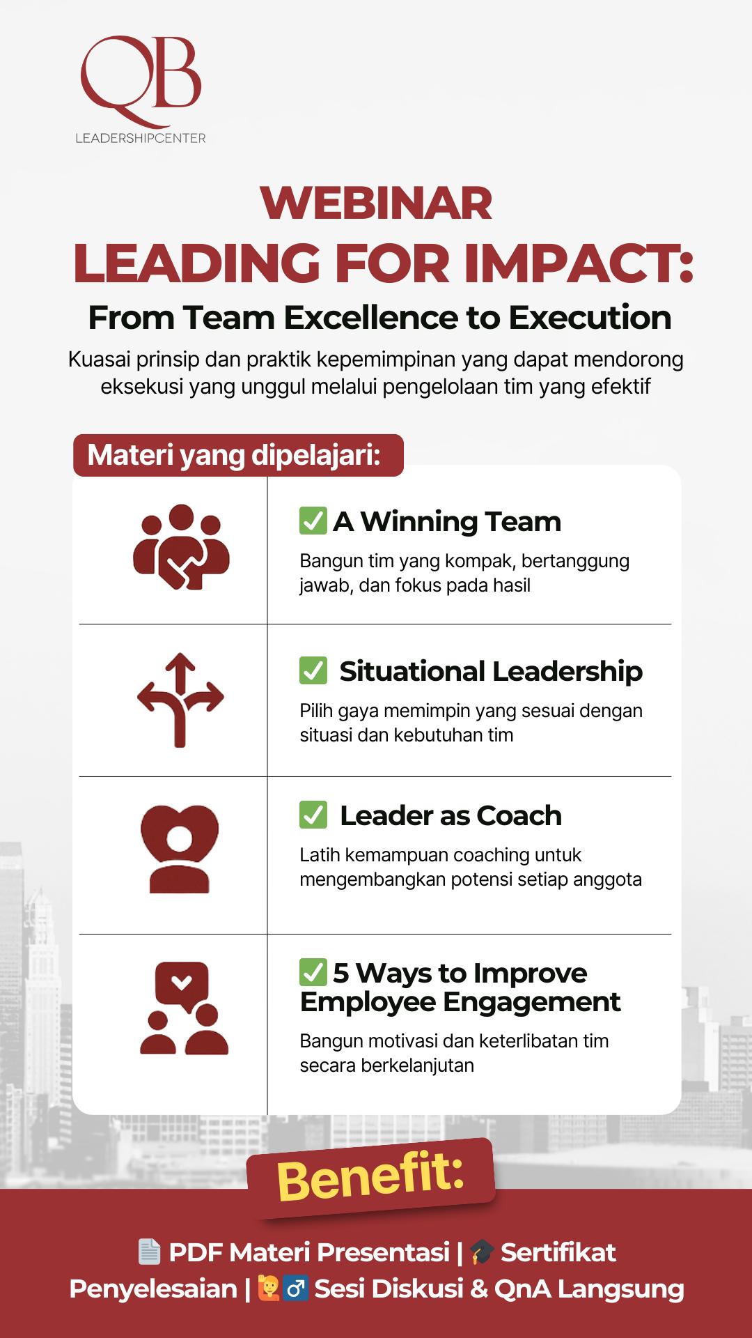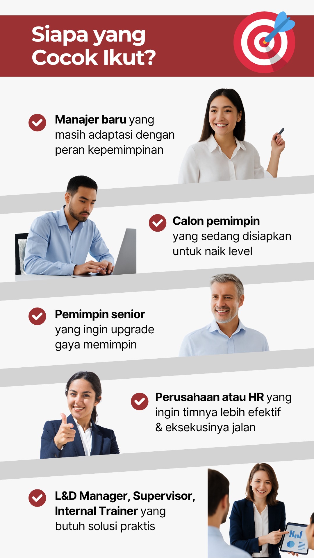 Kuasai keterampilan dan strategi kepemimpinan agar Anda bisa memimpin tim dengan lebih terarah dan hasil kerja tim jadi lebih maksimal.